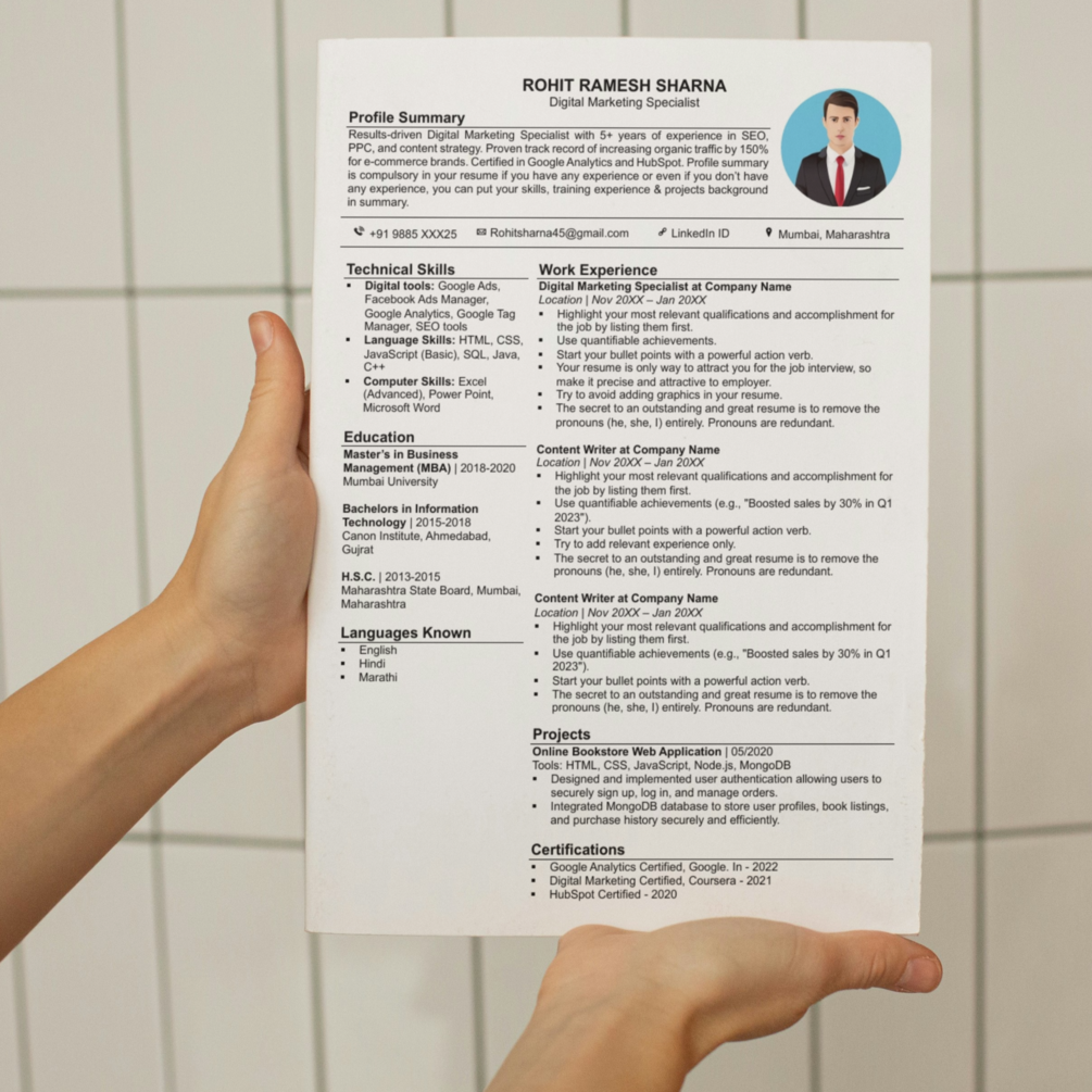 A modern, ATS-friendly 2-column resume template with a photo section — perfect for creatives and professionals who want to make a strong visual impression.